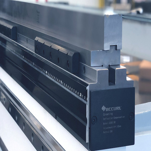تعويض الانحراف: عند ثني سطح الطاولة الطويلة، يتعرض المنزلق وسطح الطاولة لتشوه طفيف بسبب القوة، مما يؤدي إلى زوايا وسطية غير دقيقة. تعمل وظيفة تعويض الانحراف (الهيدروليكية أو الميكانيكية) على عكس هذا التشوه تلقائيًا، وهي عنصر أساسي لضمان دقة ثني قطع العمل الطويلة. يُنصح بشدة بتجهيزها.